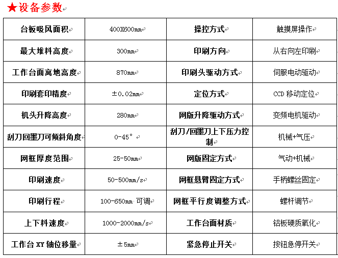 3、电路采用总线型PLC控制,印刷和机头升降采用独立驱动源,互不干扰。